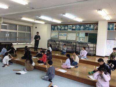 今日に向けて準備を進め、自分の思いを堂々と伝えた子どもたちに、担当の先生がよかったことや、これからへの励ましの言葉をおくられました。緊張もほどけ、笑顔で聞いています。