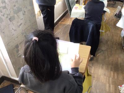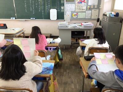 4年生の教室では、図書委員がお休みだったので、先生が読み聞かせをされていました。