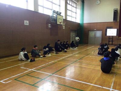 集会が終わった後は、担当の先生と振り返り。相手に伝わるよう意識して話せたことなど、