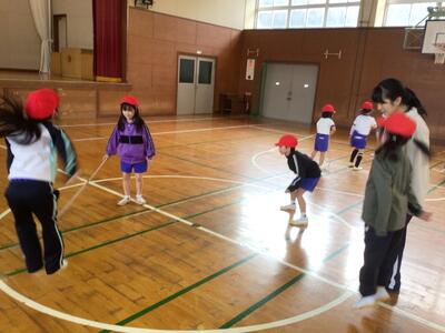 みんなが跳びやすい回し方を工夫して、ピョンピョン!