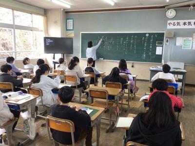 寒い時期であるため、校長先生からのお話は、各教室に戻り、