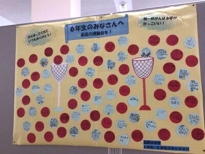 運動会本番の朝を迎えました。昇降口前には、6年生へのサプライズメッセージが掲示されています。1年生から5年生までの子どもたちが、今日に至るまでの6年生の頑張り・優しさ・リーダーシップ・努力・・・。様々なことに対しての感謝や応援の気持ちを書いています。一生懸命な6年生の姿をみんな、よく見ています。まもなく、子どもたちが登校します。