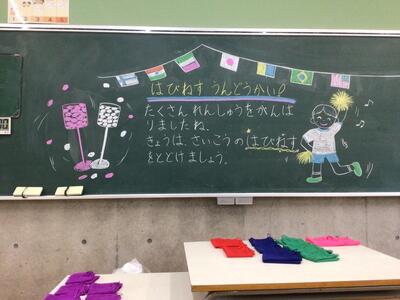 黒板に、子どもたちへのメッセージが書いてある教室もあります。本番を前にした子どもたちへの思いの伝え方は、人それぞれです。ですが、みんな、「失敗OK!チャレンジ歓迎!」の気持ちは同じ。子どもたちの精一杯の頑張りを支えます。