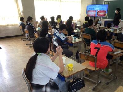 昨日の5校時には6年生に、歯科保健指導がありました。舞鶴市の歯科衛生士様にご来校いただき、正しい歯磨きの仕方や・歯科衛生において大切なことを教えていただきました。中学校入学を前にして、歯の健康を維持し、守っていくために学ぶ最後の機会となるかもしれません。みんな真剣な様子で、お話を聞き、質問にも積極的に答えるなど、主体的に学んでいました。目的意識を持って学ぶ態度はとても大切です。