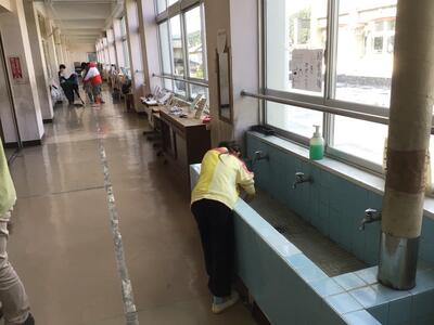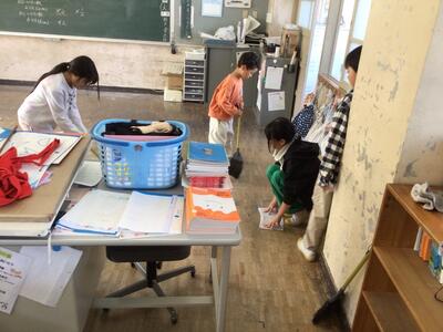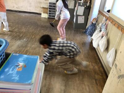 1年生も、拭き終わると、「次にすることは何かな?」と机を運び始めました。掃除は、周りの様子を見たり、次にできることを考えたりして行動できる、よい機会ですね。