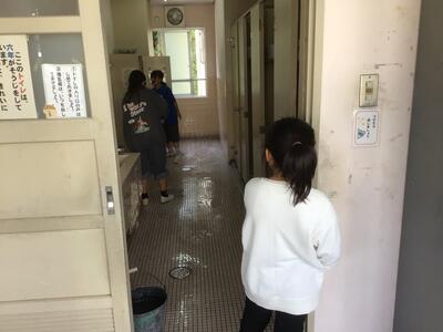 トイレ掃除の担当は、普段は高学年ですが、なかよし班掃除では、色々な学年が担当します。みんなできれいにしようと、よく頑張っていました。