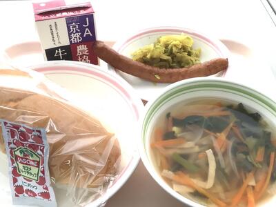 本日の献立は、セルフドッグ・キャベツ・ケチャップ・コーンスープ・牛乳です。