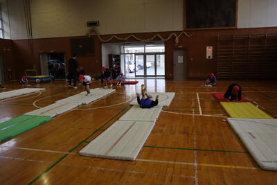 12/4 腕で支えて 腰を高く【5年生】 投稿: 学校管理者 (11:47) 5年生はマット運動を頑張っています。 腕でしっかりと支え、腰をしっかりとあげて美しいフォームを目指し、 一つ一つの技を完成させたら、連続技に挑戦します。 技を滑らかな動きでつなげていきます。 寒さにも負けず一生懸命頑張る子どもたちです。 Tweet -