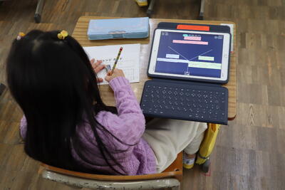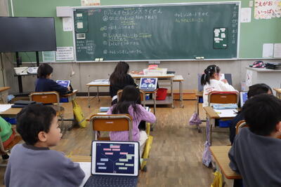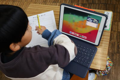 タブレットを活用しながらじっくり自分で考えたり、友達と相談したり・・・。