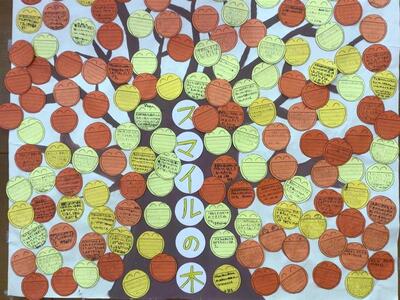 児童会からの発表「スマイルの木」スマイル葉っぱがいっぱいになりました!