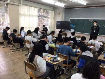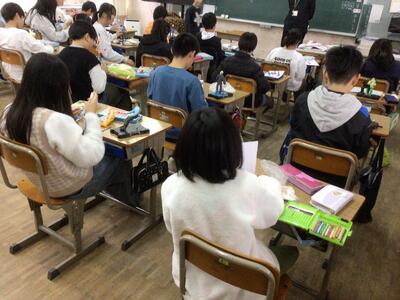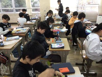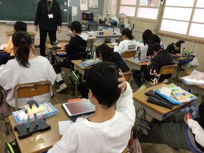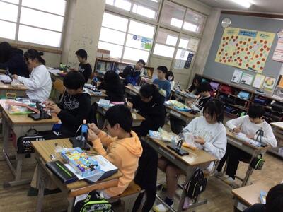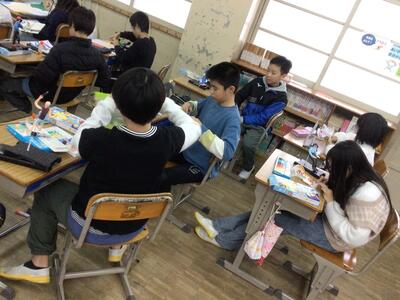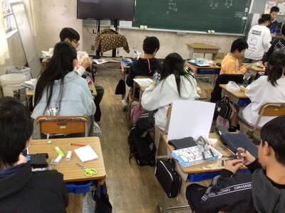 図画工作科で、作品制作に熱心に取り組んでいる6年生。