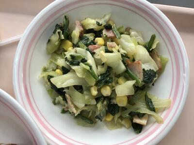 ベーコンと一緒にソテーされた野菜もパクパク。