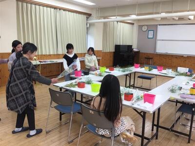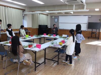 生け花クラブでは、今日も色とりどりの花材を前に、ワクワクする子どもたち。