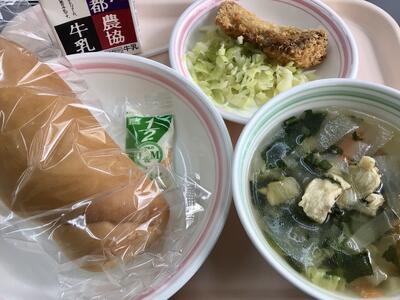 1/30 本日の給食 投稿: 学校管理者 (18:16) 😋ハマチのフィッシュバーガー 舞鶴海で獲れたハマチのフライや、キャベツをはさんで、セルフサンド🎵 😋冬野菜のスープ 野菜をたっぷりいただける、美味しいスープでした。 Tweet -