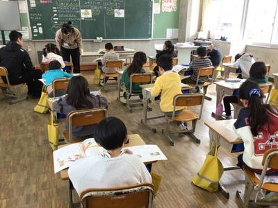 国語科では、1年間の思い出をまとめる学習が始まっています。