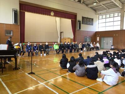 心のこもった「ありがとうの花」美しい歌声と、手話で表現した花が体育館に・・・。