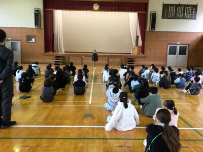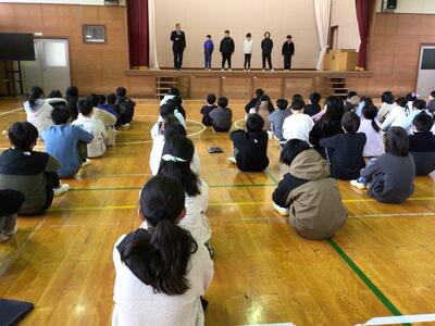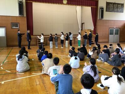 今日に向けて準備を進め、自分の思いを堂々と伝えた子どもたちに、担当の先生がよかったことや、これからへの励ましの言葉をおくられました。緊張もほどけ、笑顔で聞いています。