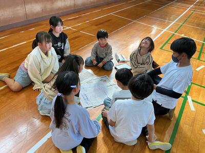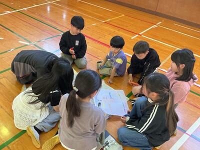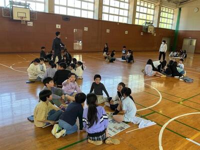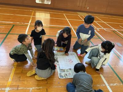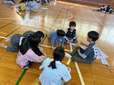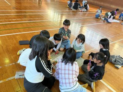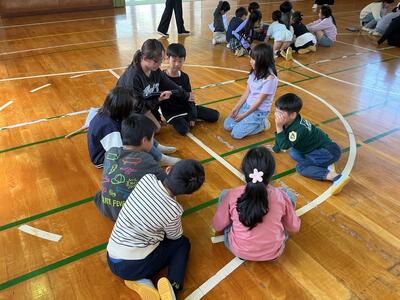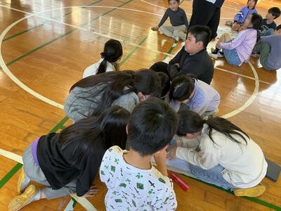 懇談会の時間に、子どもたちは体育館で「なかよし班活動」