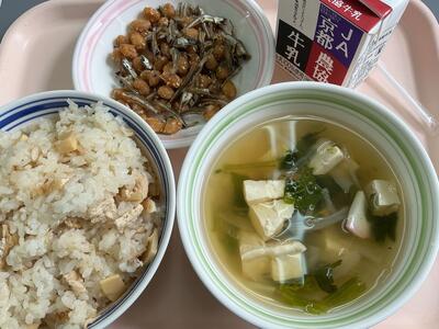 4/28 給食と陸上練習 投稿: 学校管理者 (18:40) 今日の献立は、春のごちそう たけのこご飯 カリカリで甘くて美味しい 大豆と煮干しの揚げ煮 お出汁の風味がとてもいい すまし汁 そして、美味しい牛乳 でした。 今日も、みんなで美味しくいただきました。ごちそうさまでした。 午後は、短時間ですが5・6年生が陸上大会に向けて練習。 爽やかな天気の中、元気いっぱいに運動し、伸び伸びと体を動かしました。 Tweet -