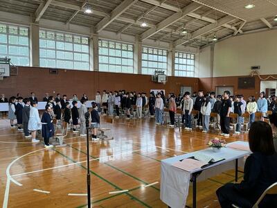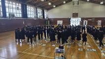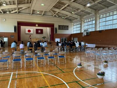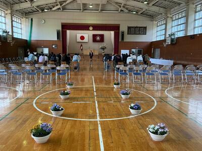 入学式の朝を迎えました。5・6年生が最終練習をしています。