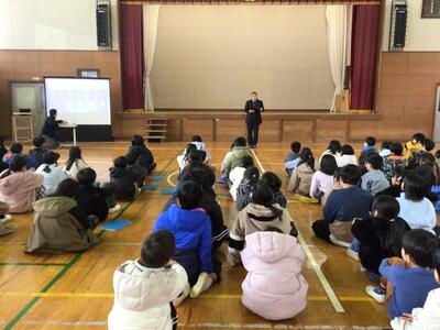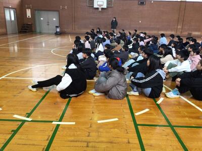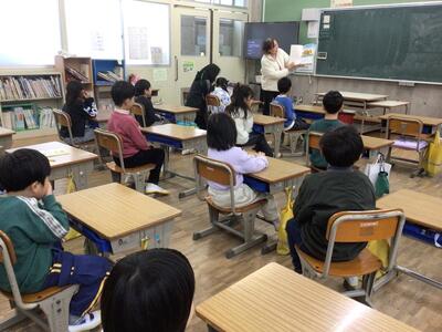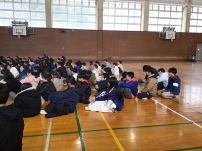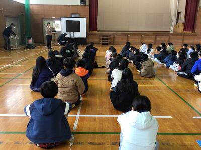 最後まで真剣に聞いていました。今頃は、今日の残菜の量を確かめたり、ごみの後片付けをされたりしている頃でしょうかと、お話されました。残菜が少ないといいですね。