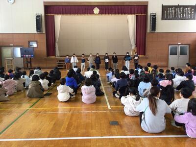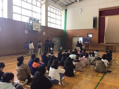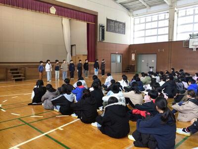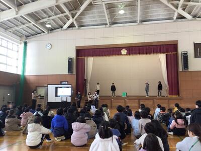 最初は、6年生を送る会実行委員の挨拶や、取組の発表です。