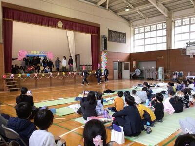 心温まる、感動の送る会が終わり、6年生の退場をみんなで見送ります。