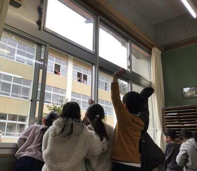 6年生の姿を見つけた1年生が、嬉しそうに手を振っています。