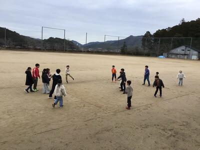 運動場では、1年生とドッジボールを楽しむ6年生の姿が。