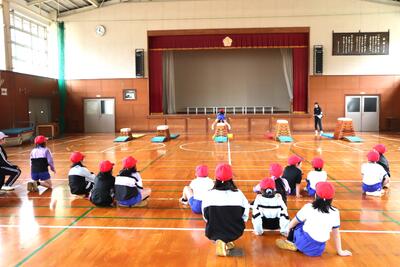 体育館に着いた児童から、さっとイスなどを出して準備をしています。