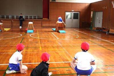 6年生が体育館にやって来ました。次の時間は卒業式練習。