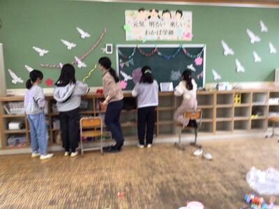 卒業生のことを思いながら、頑張る4年生5年生は、準備が終わった後、