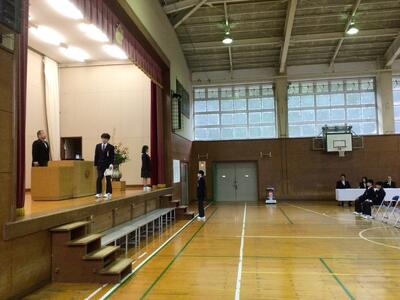 昨日4・5年生が心を込めて準備をした会場で、卒業証書授与式を挙行いたしました。