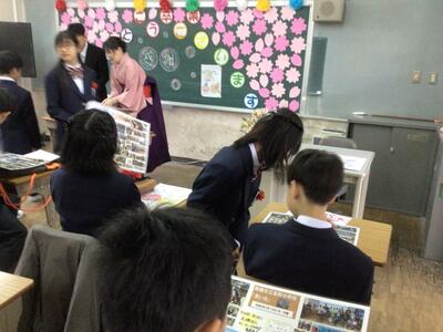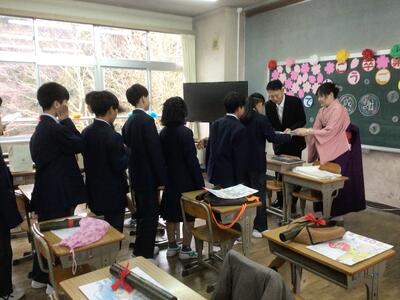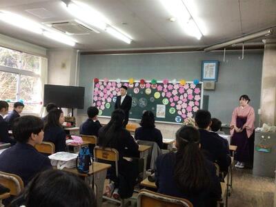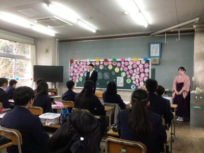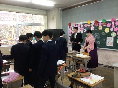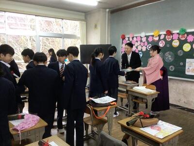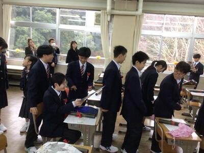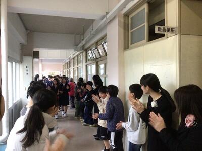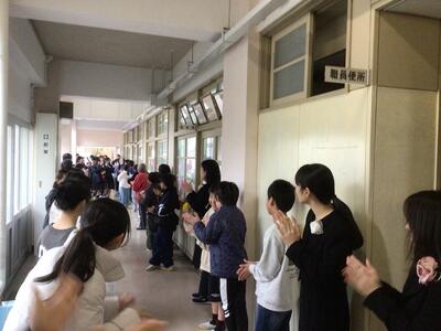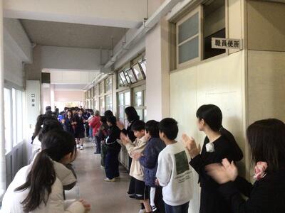 バランスよく二列に分かれ、終わったら横の列に並び、二人の先生に順に感謝の言葉を伝えていました。