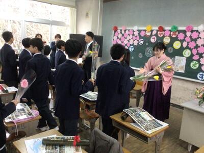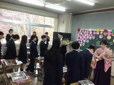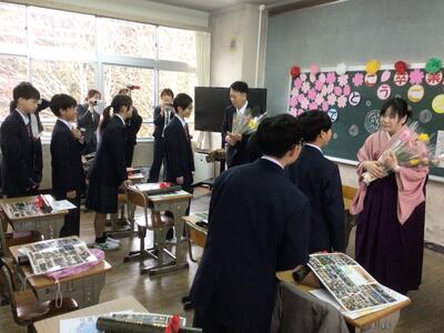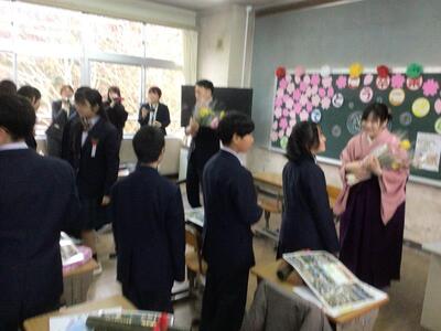 学級委員長さんがご準備くださり、子どもたちから担任へのお花のプレゼントとお礼の言葉がありました。