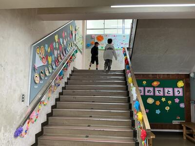階段や廊下、1年生の教室を、飾り付けました。頑張る高学年はかっこいいですね。