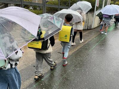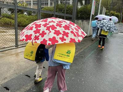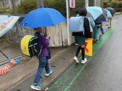 1年生も登校班に入り、一緒に元気に学校へ。今朝は教職員も、地域の方と登校指導を行いました。