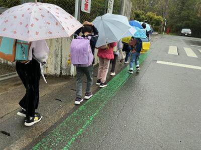 高学年が、1年生の様子を確かめながら歩いていました。