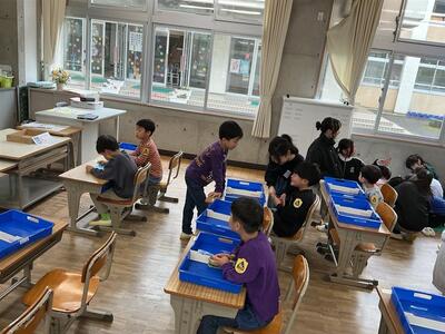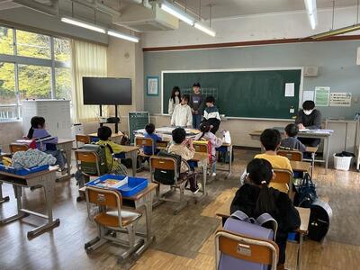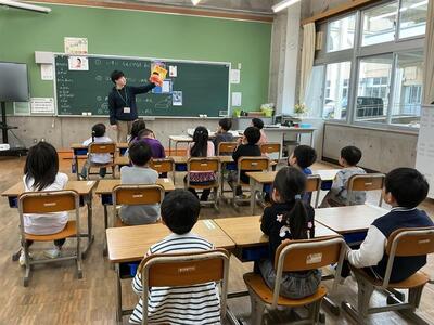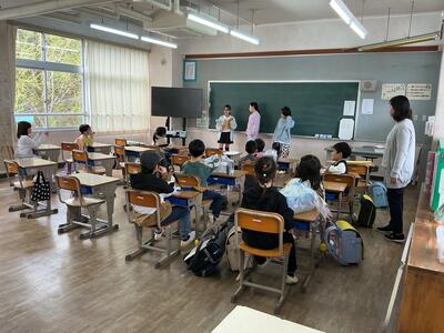 朝の1年生の教室はにぎやかで、楽しそうです。