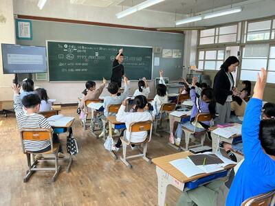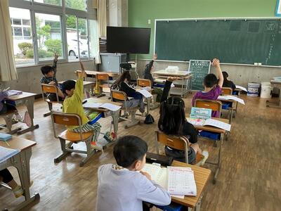 発言するとき、話を聞くとき、授業の中で大事にしたいことを、先生と確かめながら頑張る子どもたちです。