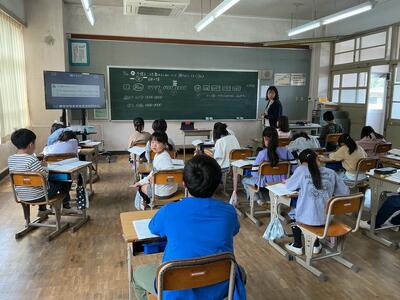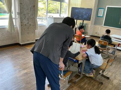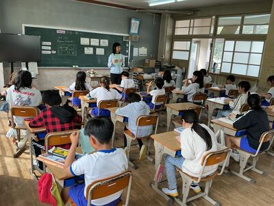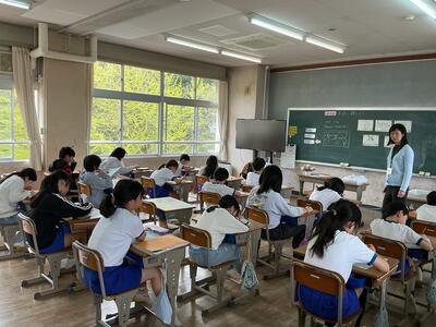 5・6年生の外国語は、城南中学校より英語専科の先生に来ていただきます。