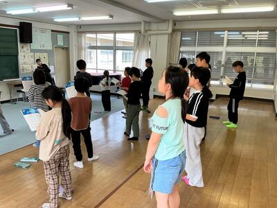 二部で歌い、声の重なりが感じられるように学習を進めていきます。